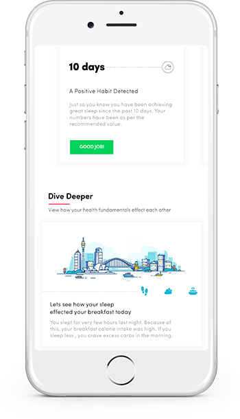 It coaches you on your sleep and teaches you effective mindfulness technique to reduce stress. Get a complete breakdown of your sleep cycle with deep light & REM breakdown of sleep duration